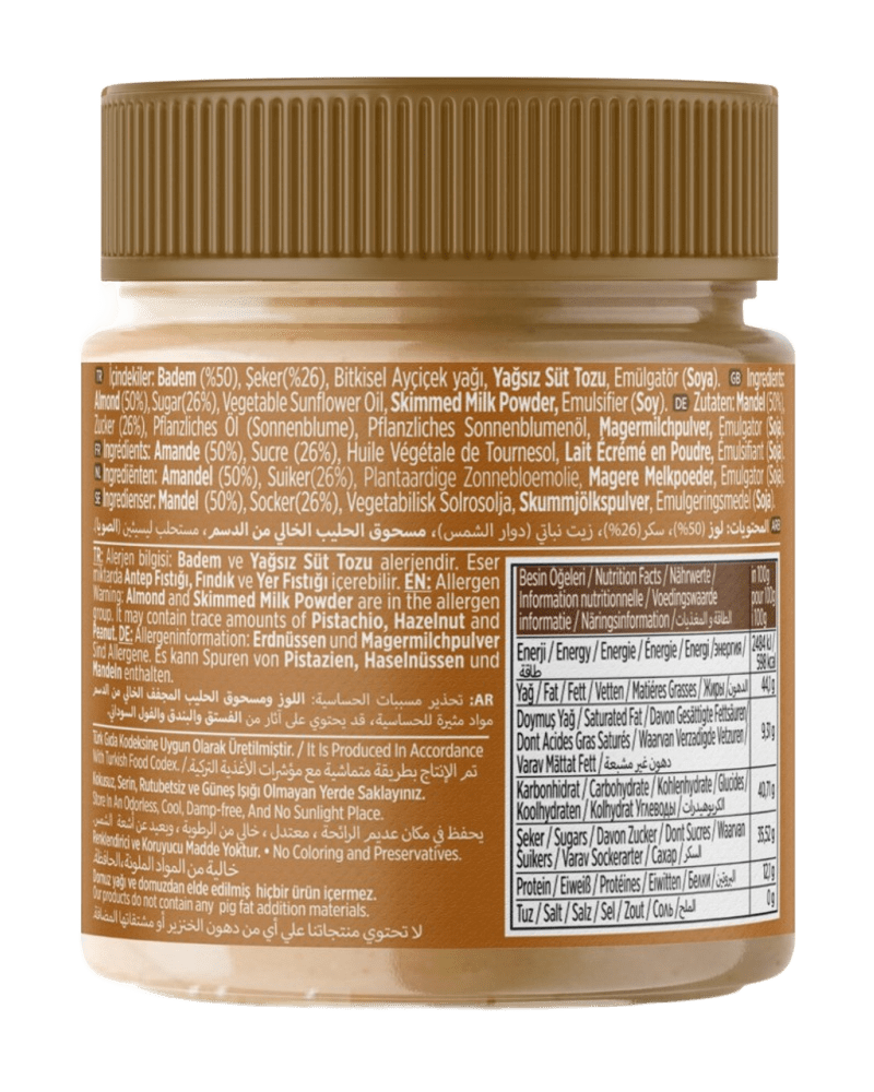 Her kavanozda; %50 badem ve doğal ürünler bulunur.