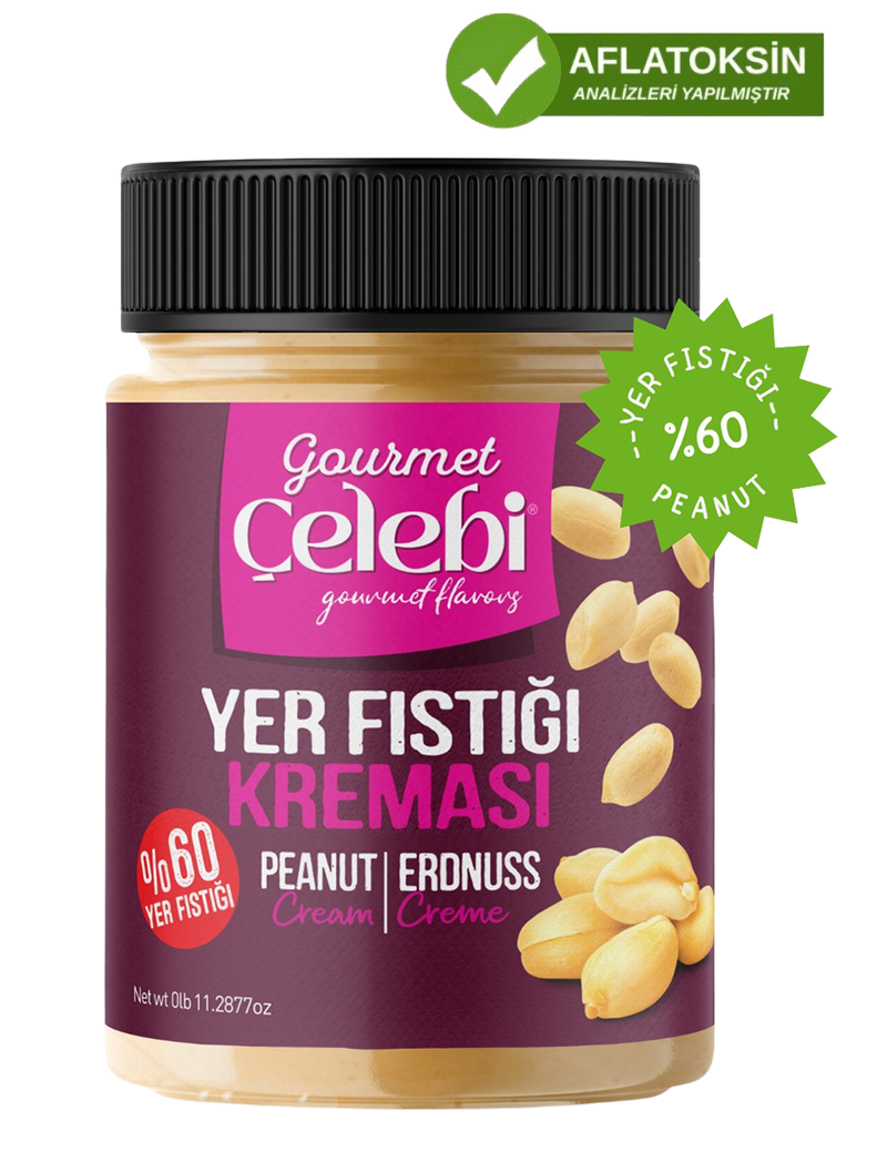 Özenle seçilen en kaliteli yer fıstıkları kullanılarak, yeni ve modern üretim tesisimizde el değmeden hazırlanan Gourmet Çelebi Yer Fıstığı Kreması, %60 oranında yer fıstığı içeriğiyle yoğun aromalı ve karakteristik bir lezzet sunar.